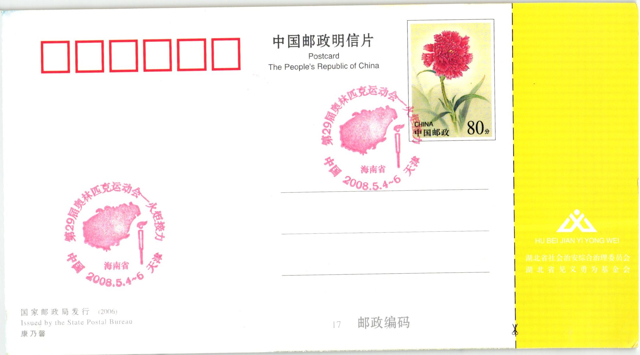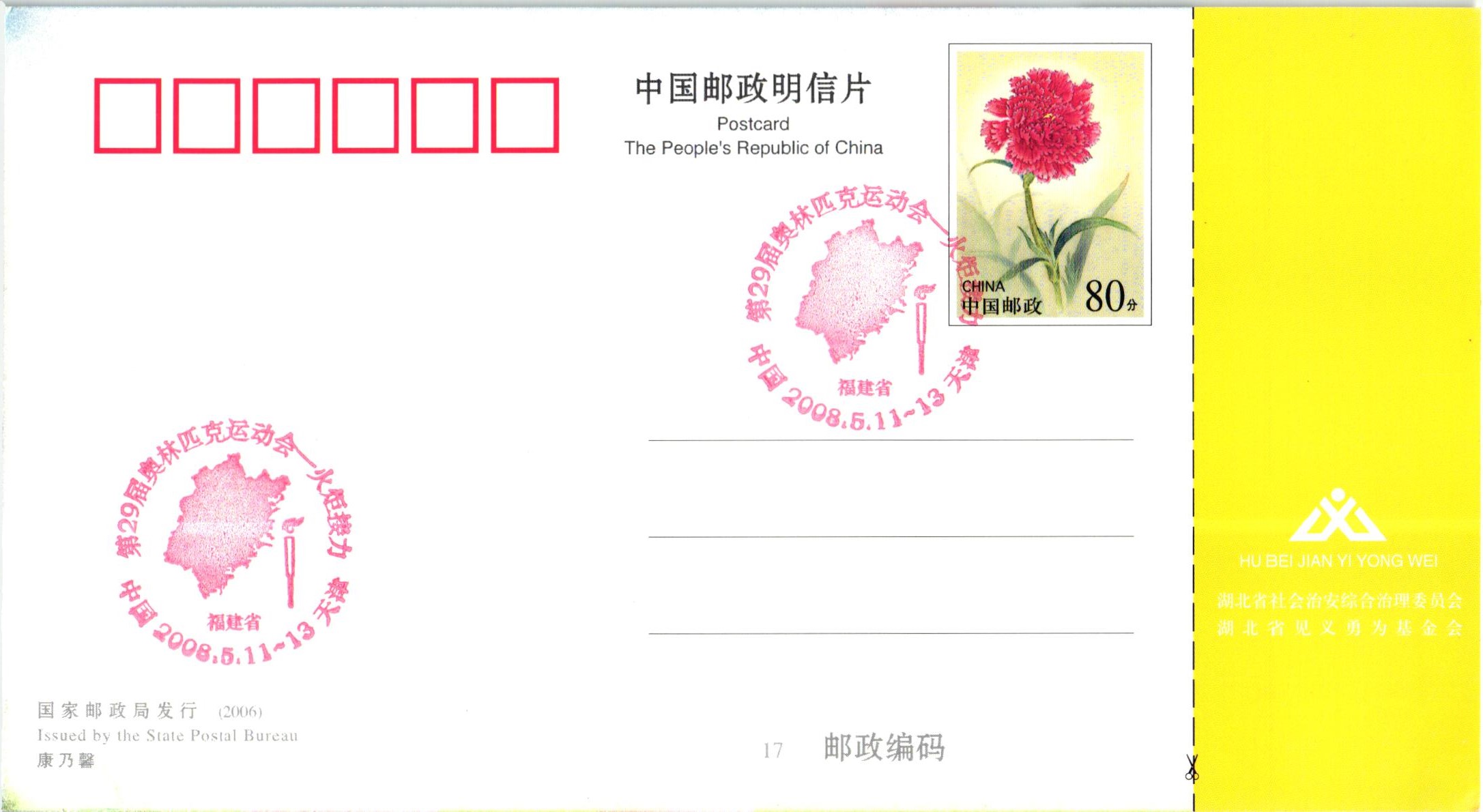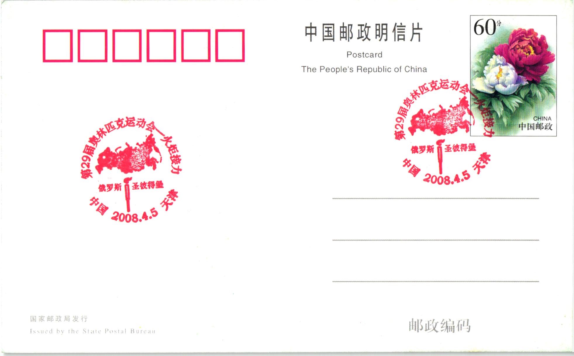 Tianjin Post Office to use a set of Beijing Olympic Torch relay postmark, passing outside the map of each country and city names toch, the torch relay date 19 piece