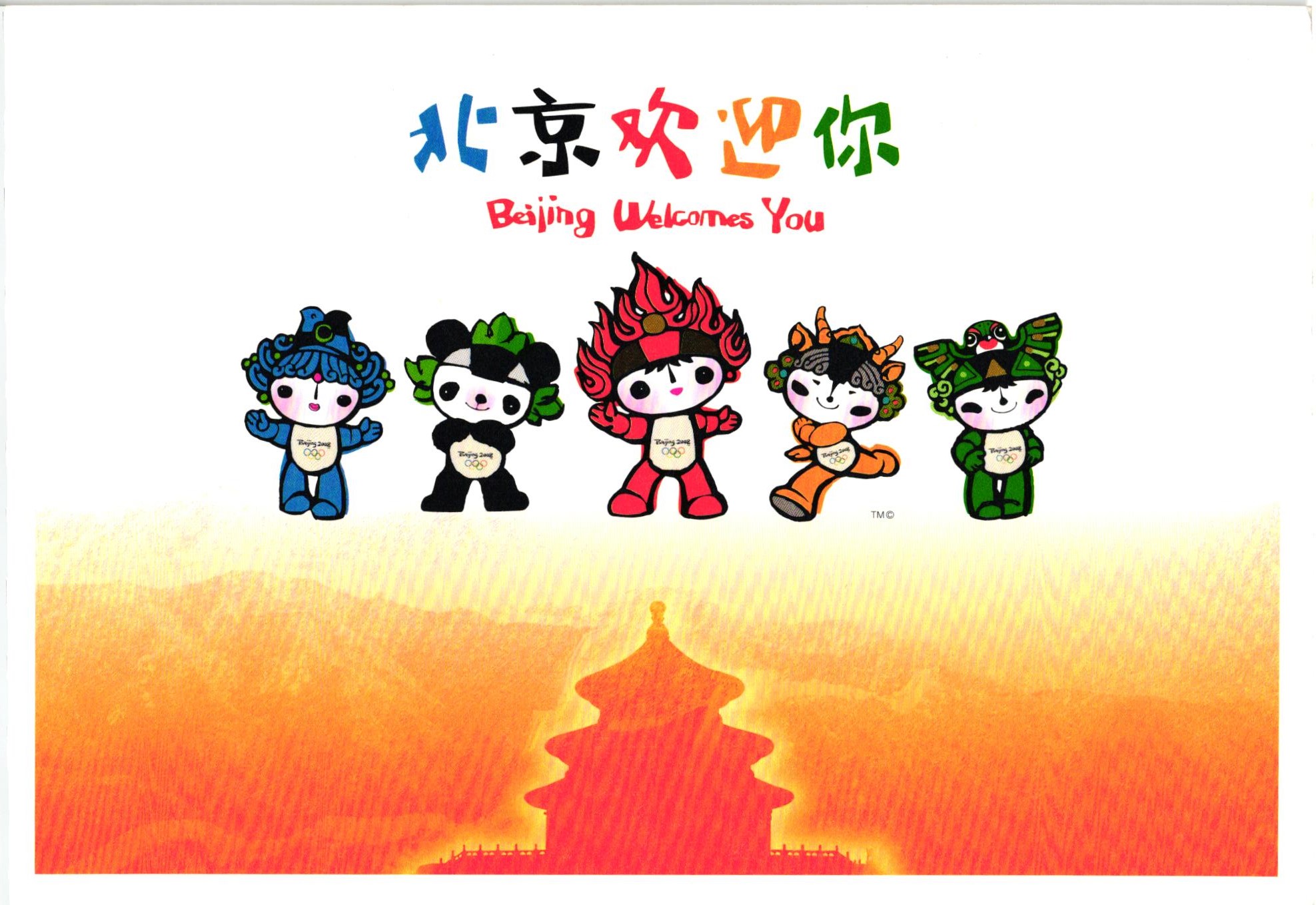 CHINA, Olympic Beijing 2008 Mascotte Postcard Olympia mascots 2007