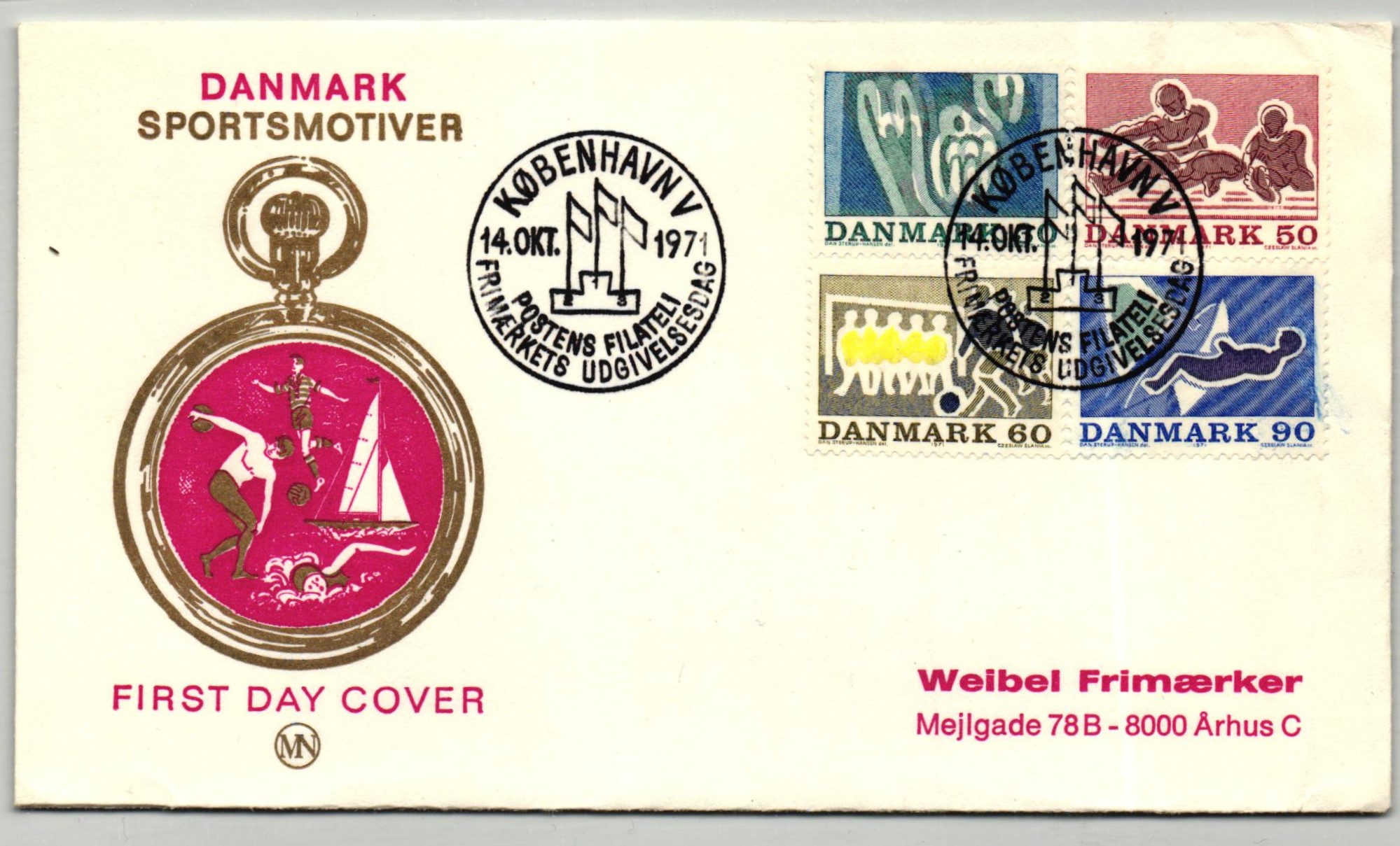Danmark, Kobenhavn 1971, Sportmotiver, Sport Fußball, Segeln FDC