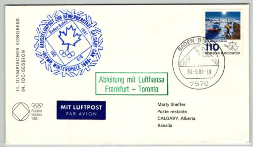 Germany 1981, Olympic Games, Baden Baden IOC Kongress, Calgary 1988 Candidate City, Airmail Frankfurt-Toronto Lufthansa, Olympische Spiele