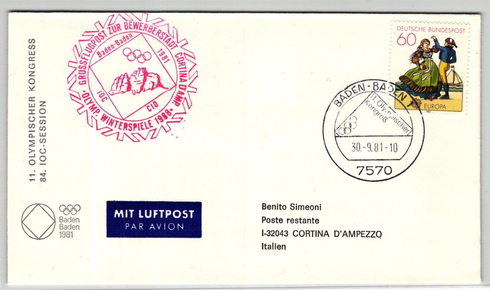Germany 1981, Olympic Games, Baden Baden IOC Kongress, Cortina d’Ampezzo 1988 Candidate City, gelaufen nach Italien, Olympische Spiele
