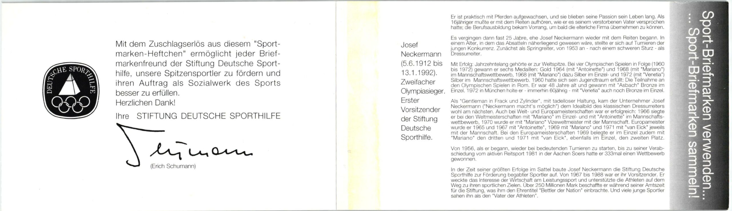 Germany Atlanta 1996, Olympic Games, Markenheftchen Reiten Josef Neckermann