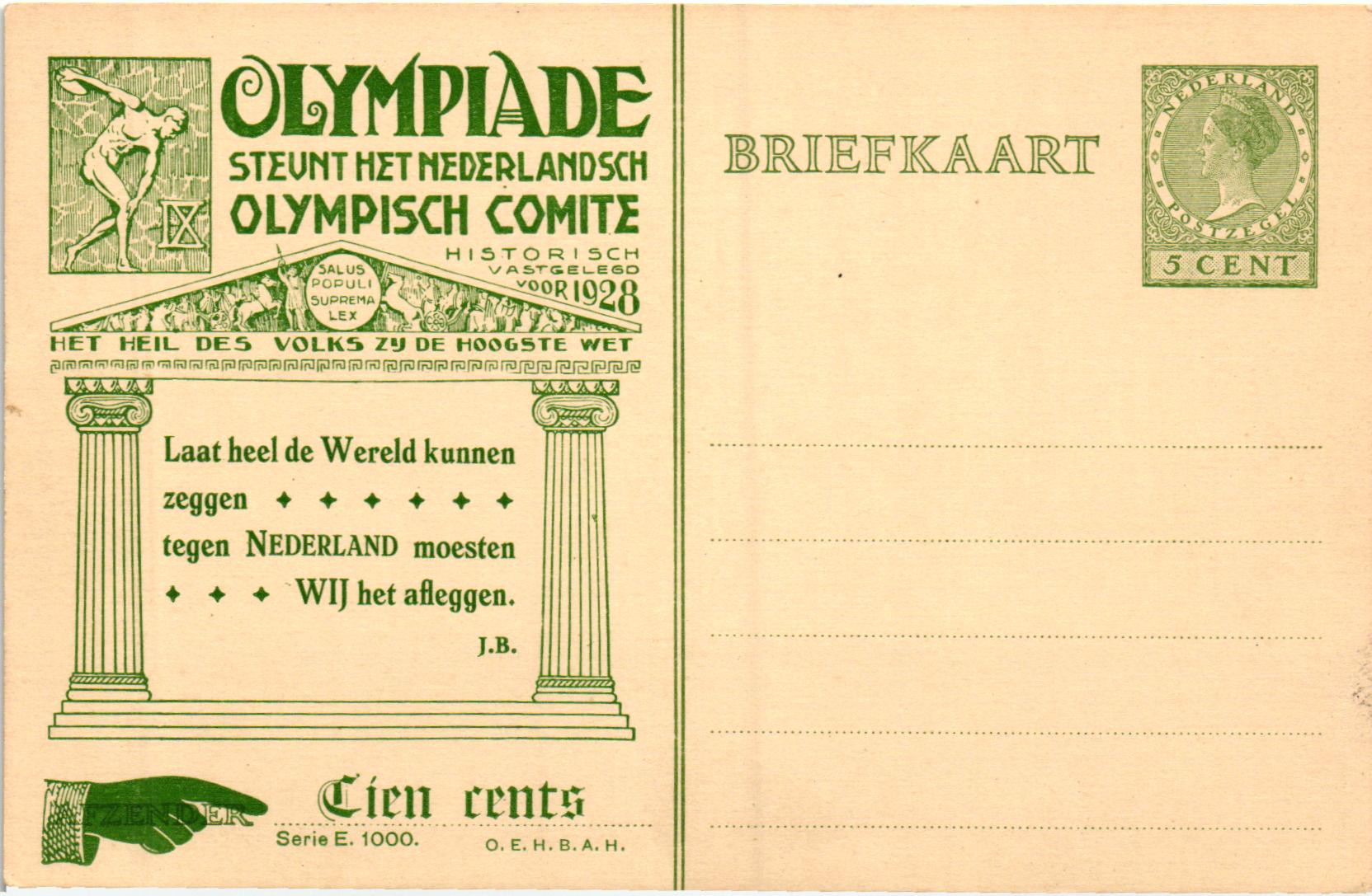Nederland, Postal Stationery Netherlands 1928 – IX Olympic Games / Olympiad Amsterdam, Olympia, JO